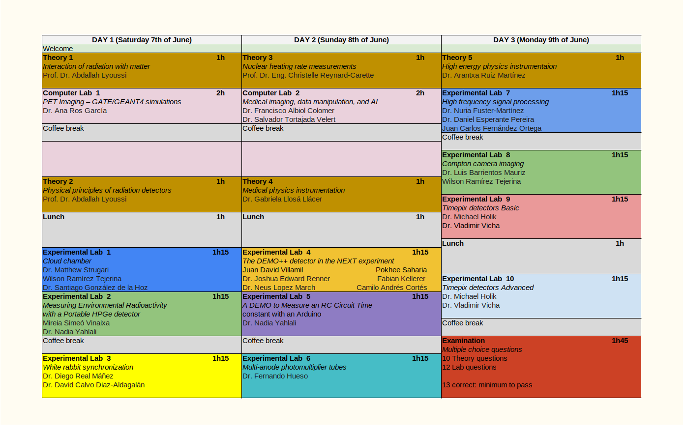 Participants will get familiar with the sophisticated pixel detector Timepix through the session of practical hands-on exercises performed with SESTRA educational kit. Participants will learn how to build an experimental set-up, how to configure measurement parameters, how to run acquisition and how to evaluate measured data. The basic types of radiation produced by several emitters, including natural radiation background, will be studied and distinguished according to recorded tracks via the pixel detector. Further, the properties of each kind of radiation will be examined.
